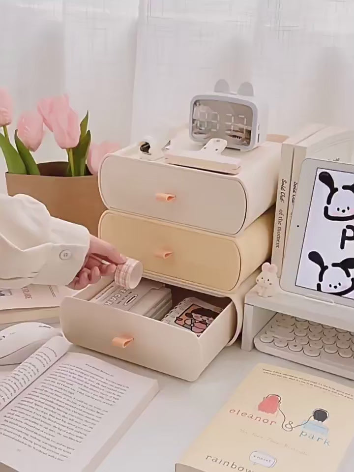 Transform your vanity or workspace with the Golden Household Daraz Storage Box. This premium-quality organizer is meticulously designed to keep your cosmetics, skincare, or office accessories perfectly tidy. Combining a soft, modern aesthetic with tiered drawer functionality, it brings both "light luxury" style and practical efficiency to your daily routine.