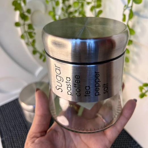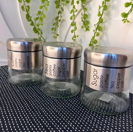 Elevate your kitchen organization with the Golden Household Glass Jar 3pcs Set. These premium-quality jars blend practical usability with an elegant design, featuring a stylish combination of silver and black matte finishes. Perfect for keeping your spices, coffee, sugar, or tea fresh and accessible, this set is a must-have for every modern home.