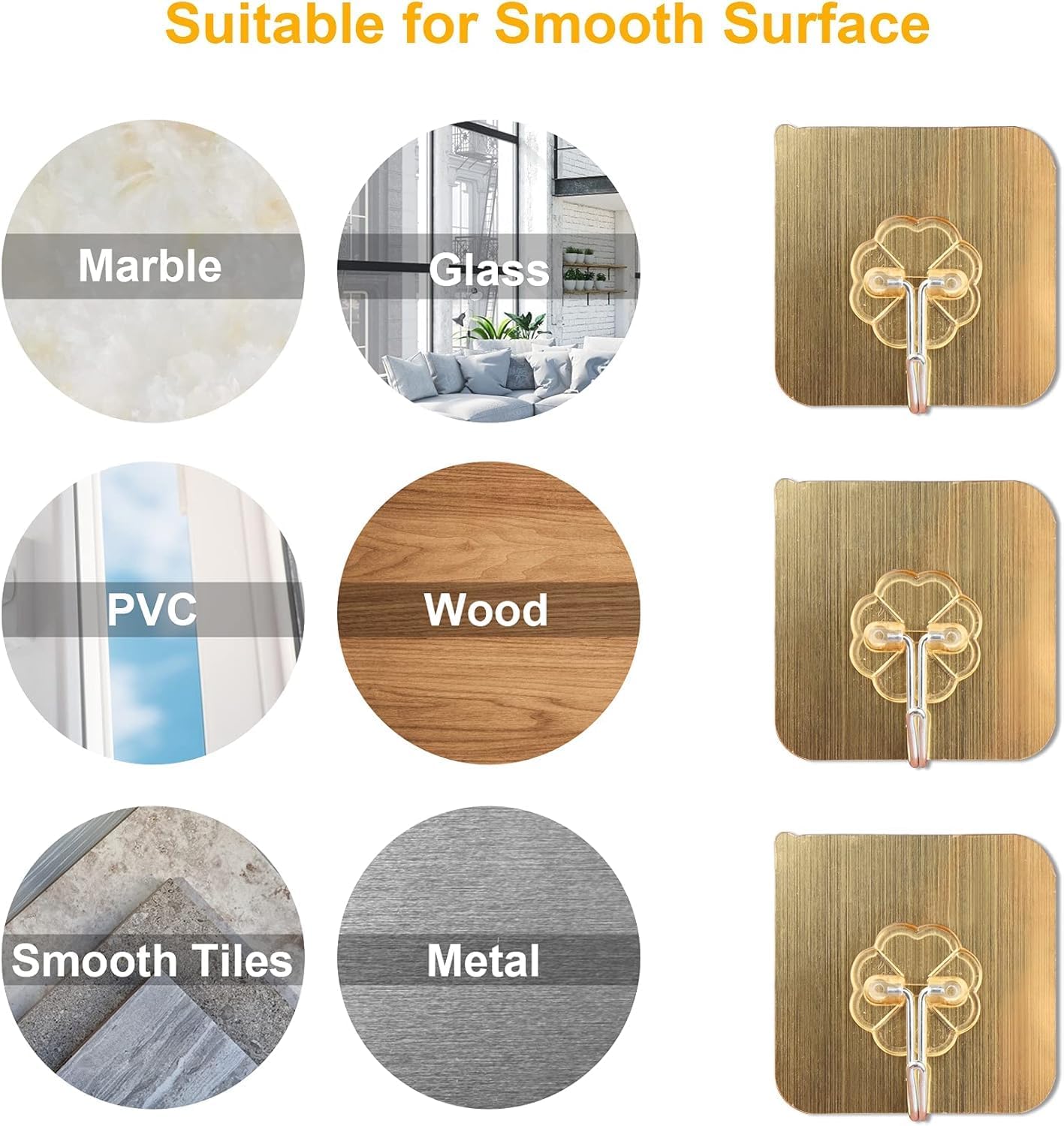 - Material: High-grade, rust-resistant metal hook on a durable adhesive card