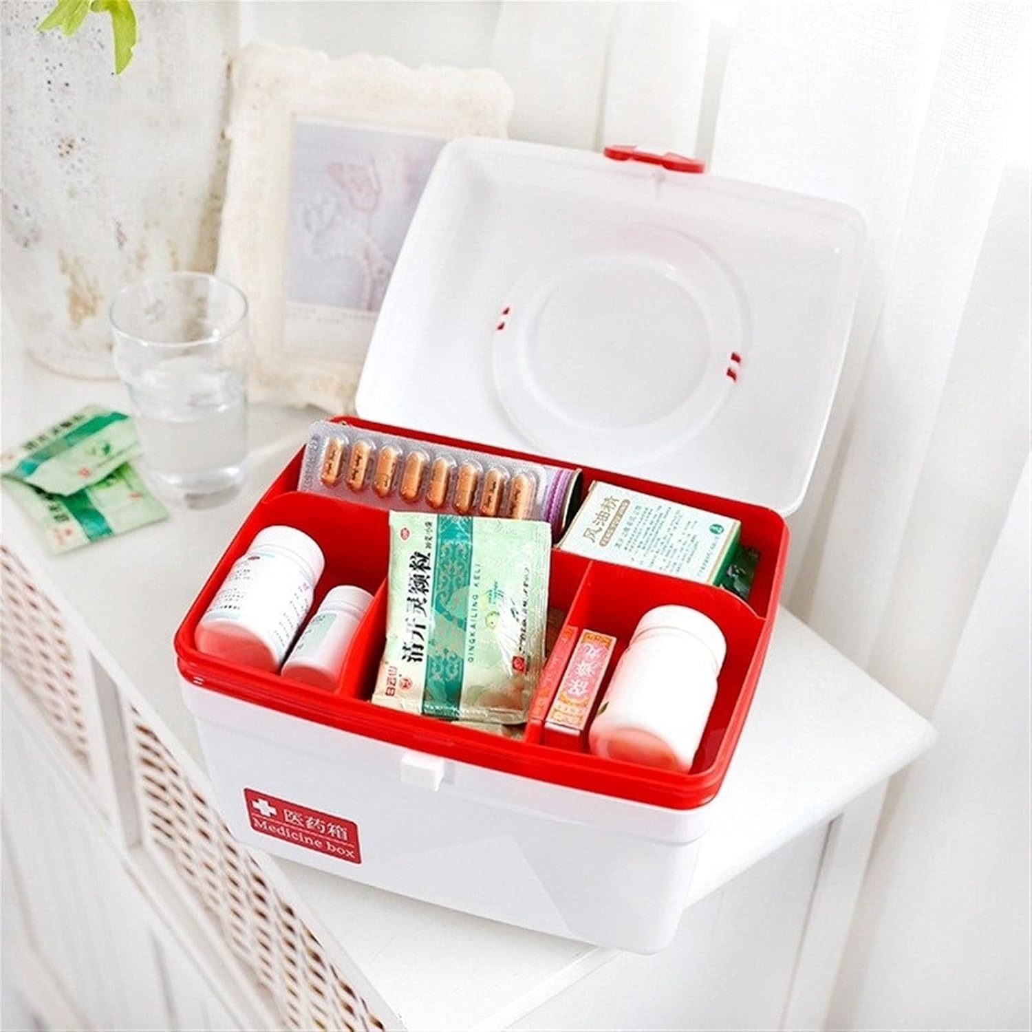 - Professional Double-Deck Design: Features a specialized internal layout with a removable top tray for small essentials like thermometers and ointments, leaving the deep base free for large bottles and bulky bandages.