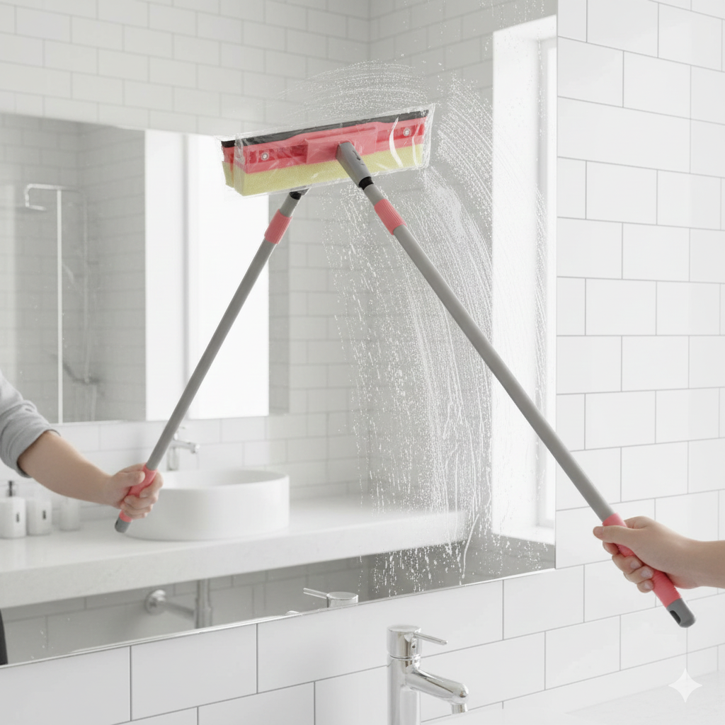 - Extended Reach Handle: Equipped with a long, sturdy pole that allows you to safely clean high windows, mirrors, and shower doors without a ladder.