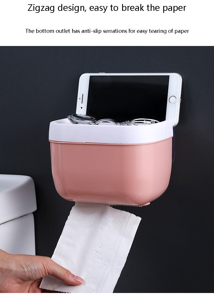Seamless Toilet Tissue Box – Waterproof Wall-Mounted Holder & Phone Stand