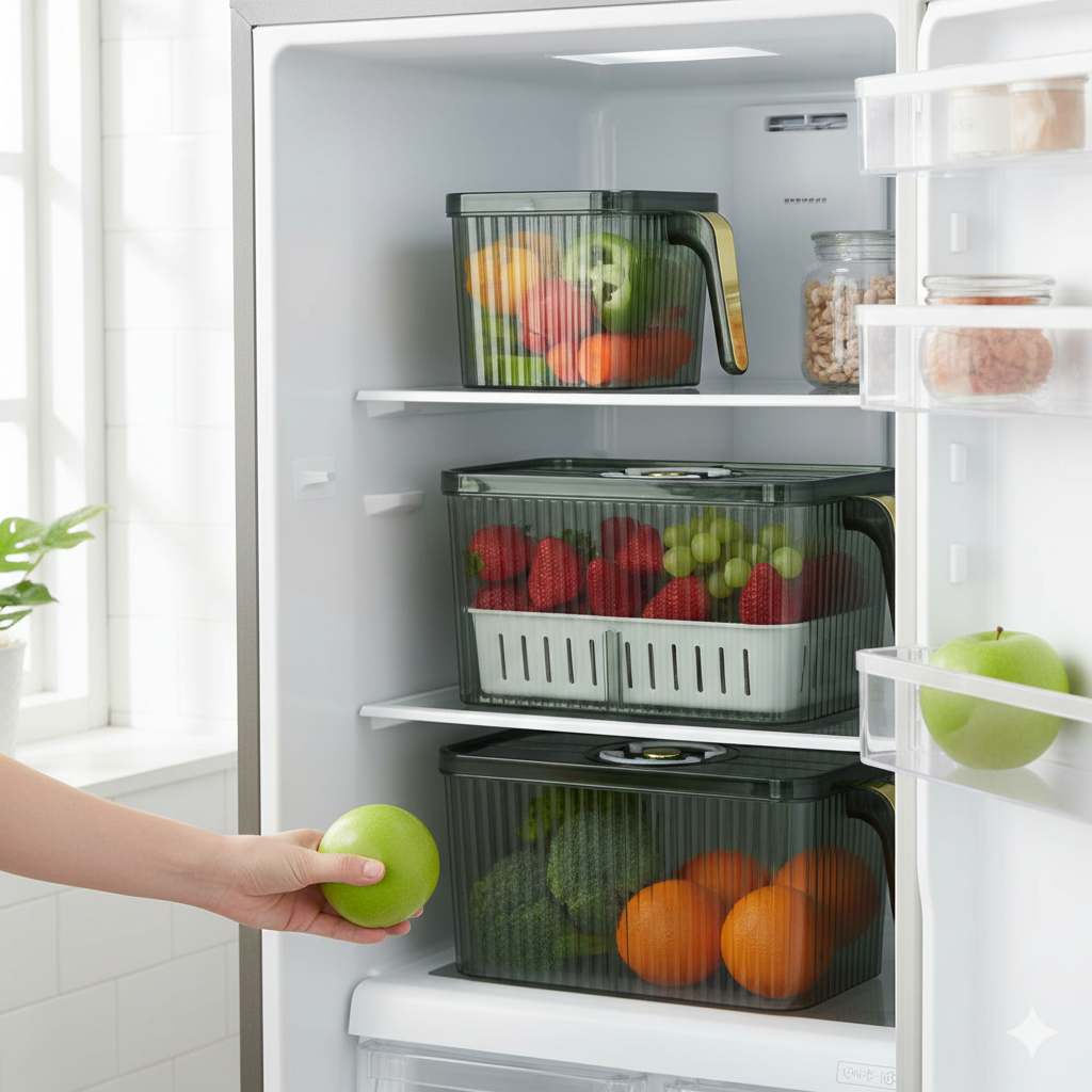 Master your kitchen organization with the Golden Household Storage Box Acrylic with Handle. This premium-quality storage container is meticulously designed to enhance convenience and style in your daily life. Combining a sophisticated "light luxury" aesthetic with professional-grade functionality, these boxes offer an elegant, space-saving solution for modern pantry and refrigerator management.